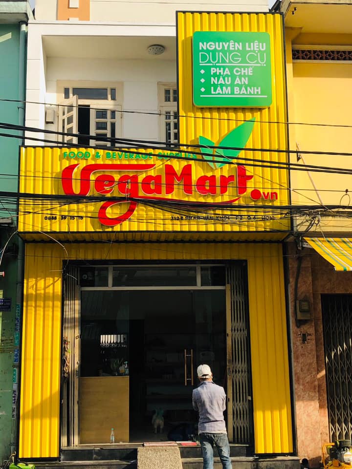 Trên nền lam có thể gắn chữ nổi mica, inox, alu, kết hợp đèn LED hắt sáng để tăng khả năng nhận diện vào ban đêm.