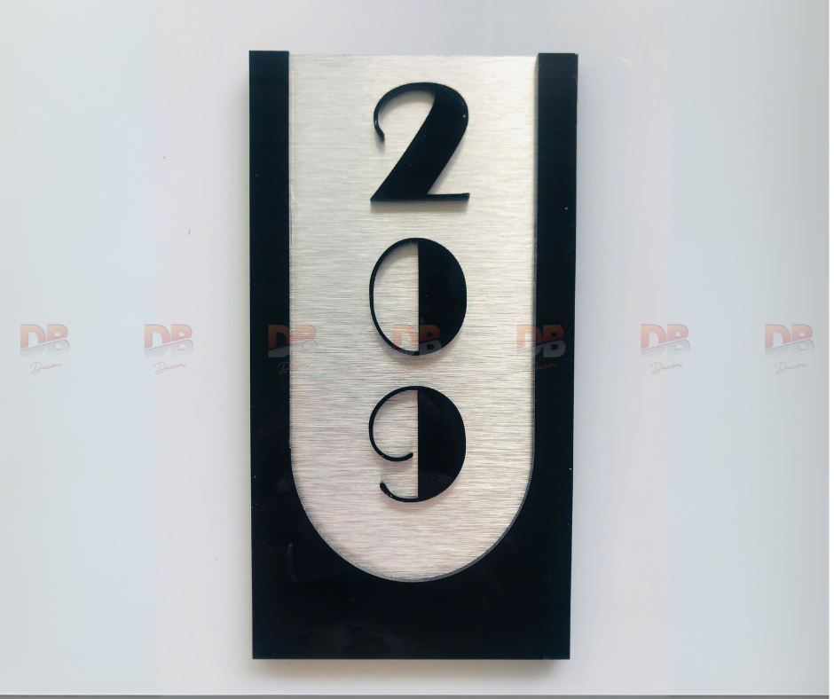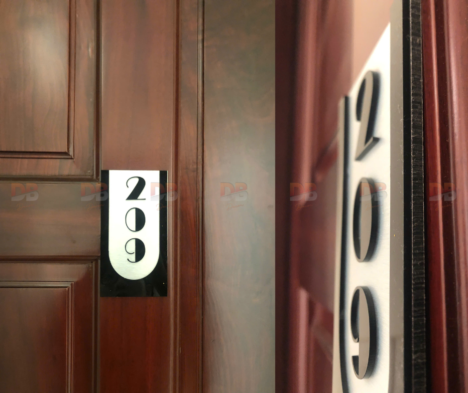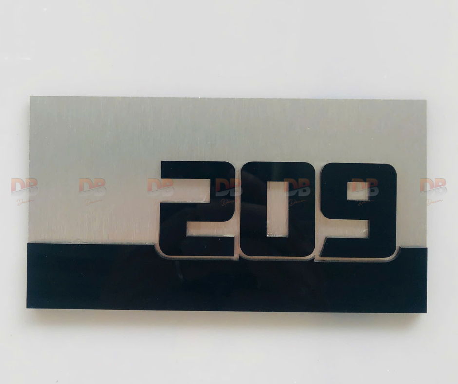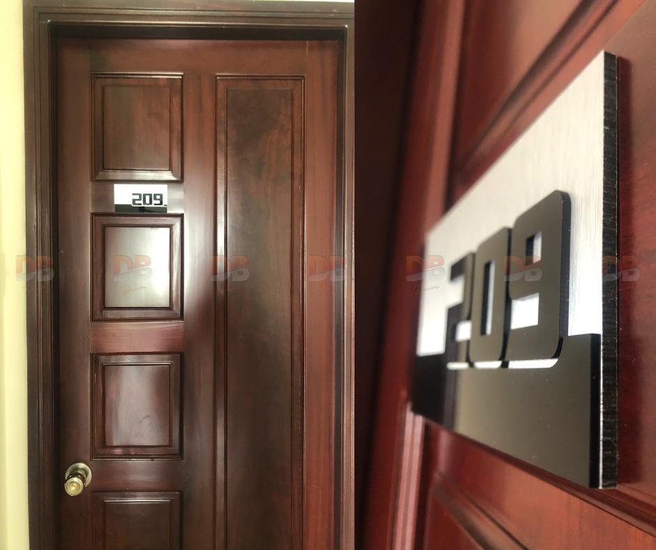 Biển số phòng Alu xước + mica nổi 3D | Xưởng DB Decor