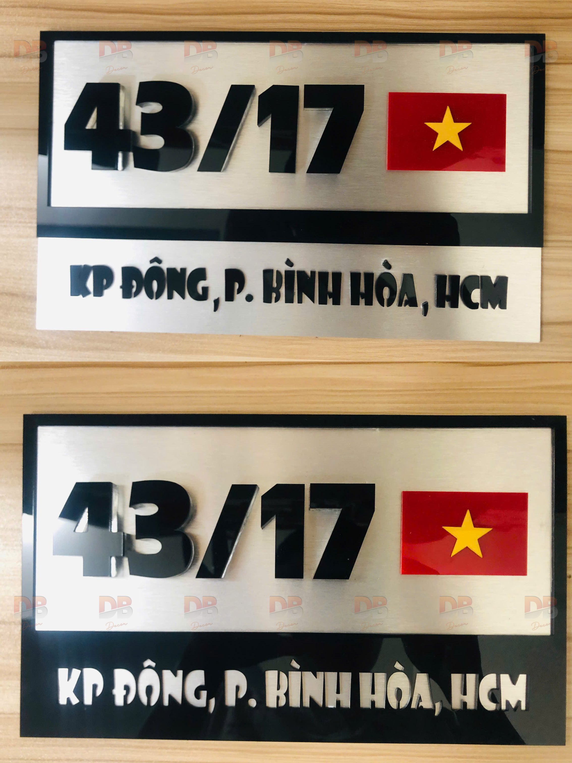 Biển số nhà cao cấp – Số mica đen lót mica trong, nền alu bạc xước