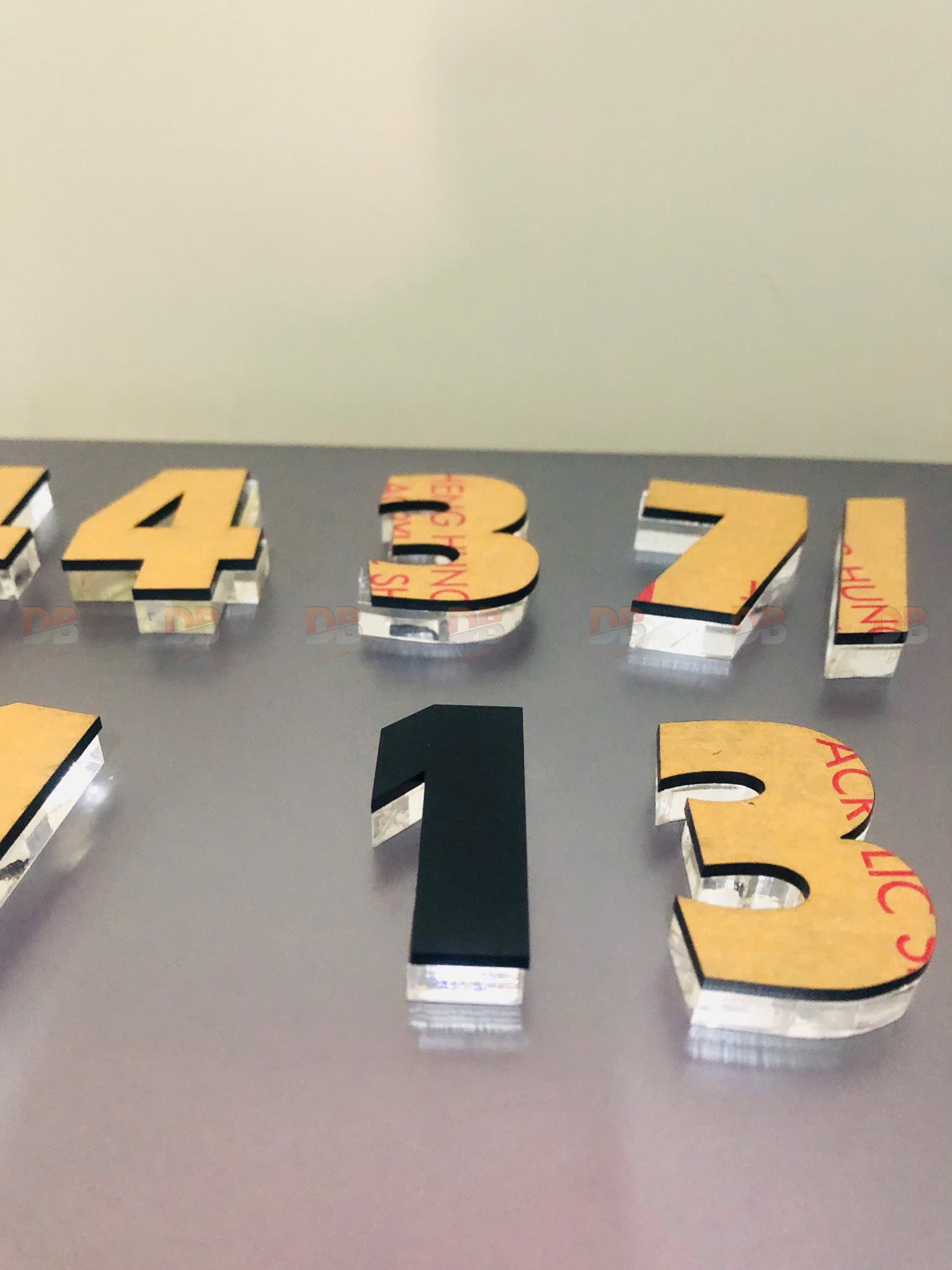 • Số nhà: Mica đen cắt laser sắc nét, lót mica trong phía dưới tạo viền “floating” tinh tế; mép cắt bóng như gương.