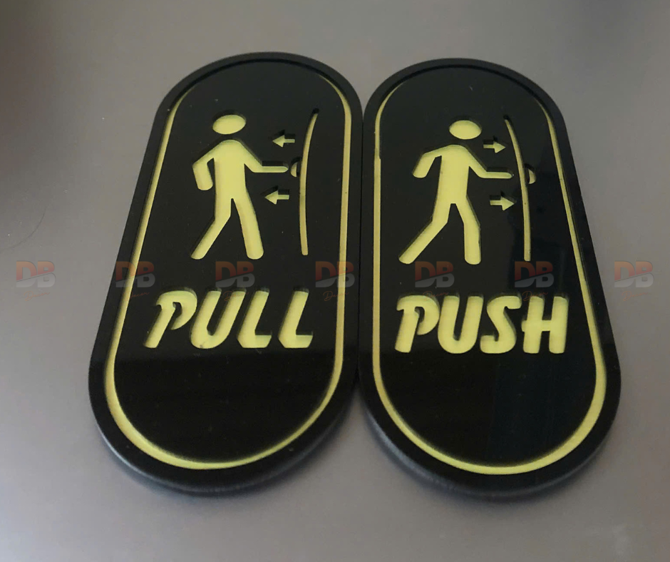 Bộ bảng chỉ dẫn WC – Push/Pull bằng alu vàng xước mica đen nổi