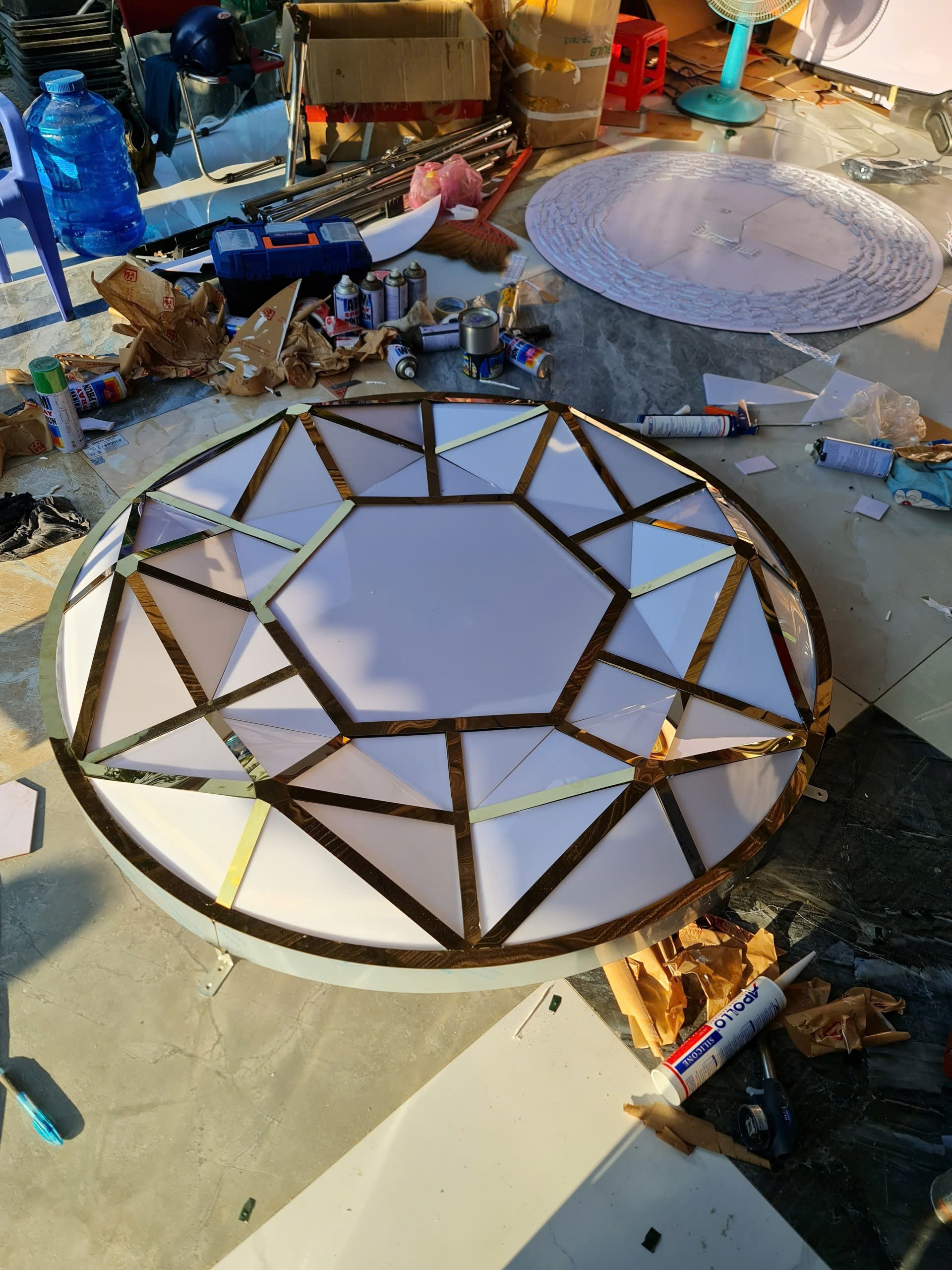 Bố cục hài hòa: Phần chân đế sử dụng đá hoa cương trắng làm nền, giúp tôn vinh khối kiến trúc vàng rực rỡ phía trên, tạo cảm giác vững chãi và tin cậy.